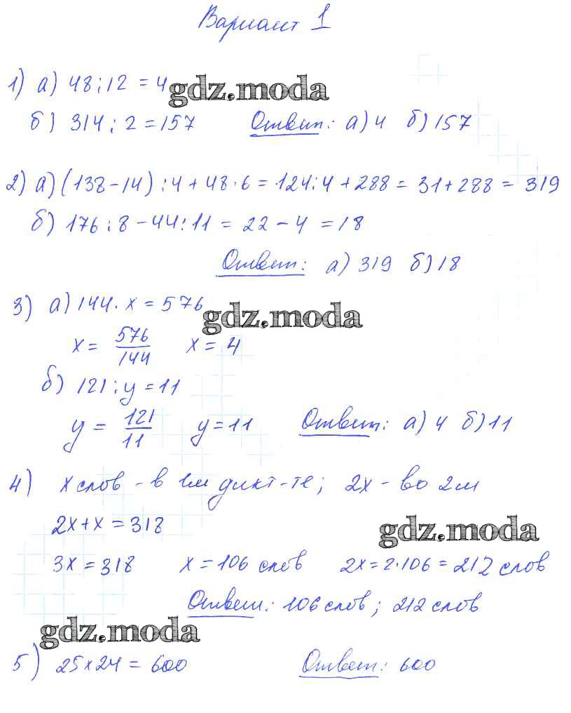 ОТВЕТ на задание № вариант №1 Дидактические материалы по Математике 5 класс Попов УМК