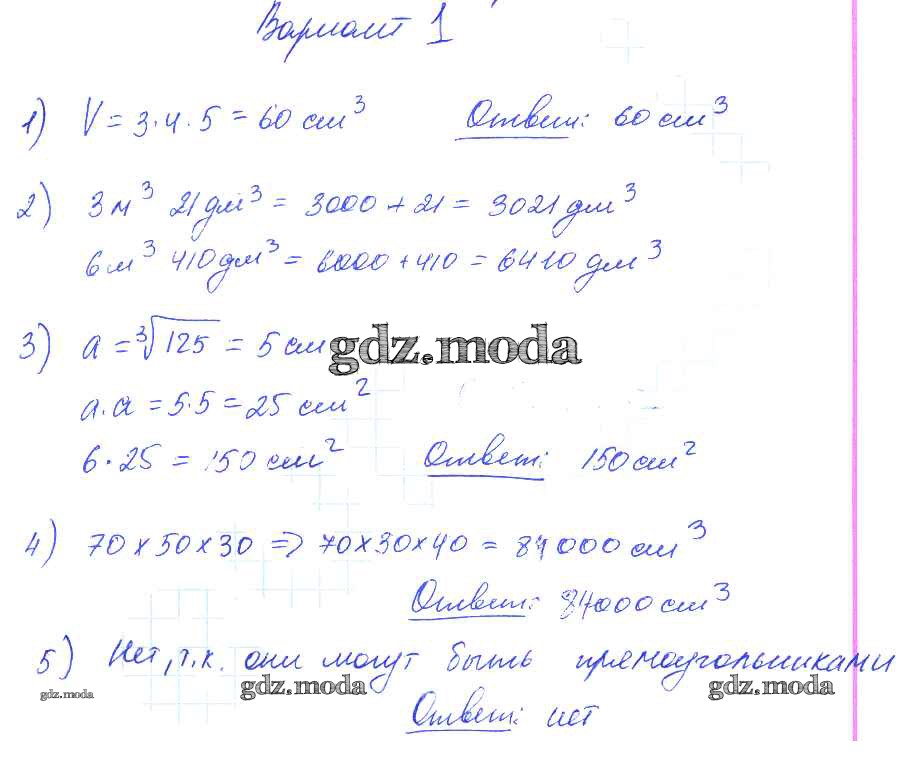 ОТВЕТ на задание № вариант №1 Дидактические материалы по Математике 5 класс Попов УМК