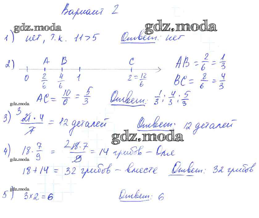 ОТВЕТ на задание № вариант №2 Дидактические материалы по Математике 5 класс Попов УМК