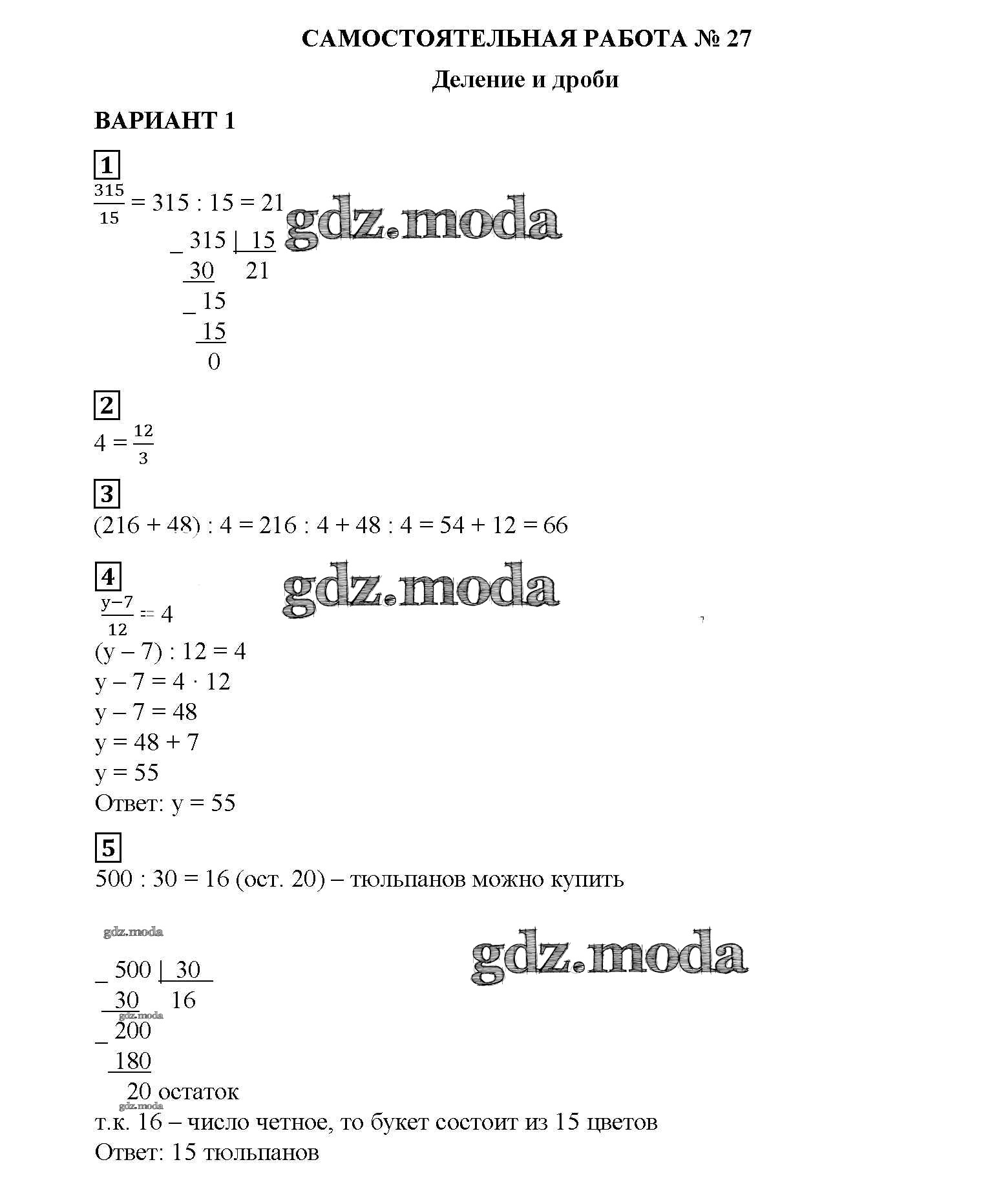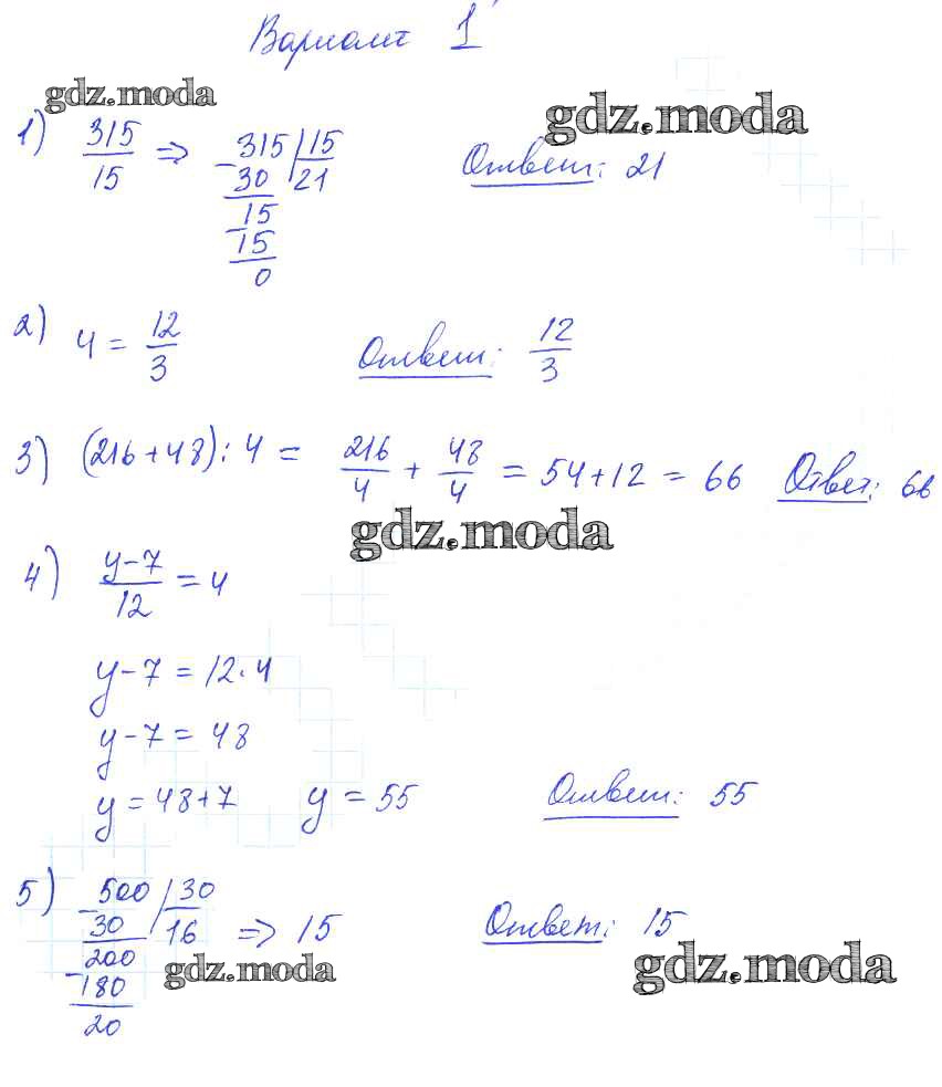 ОТВЕТ на задание № вариант №1 Дидактические материалы по Математике 5 класс Попов УМК