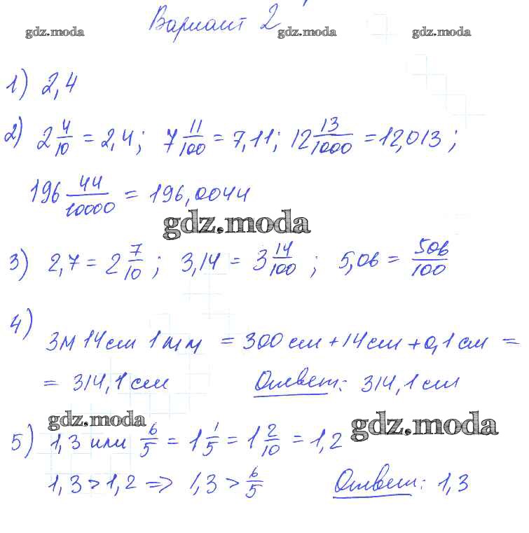 ОТВЕТ на задание № вариант №2 Дидактические материалы по Математике 5 класс Попов УМК