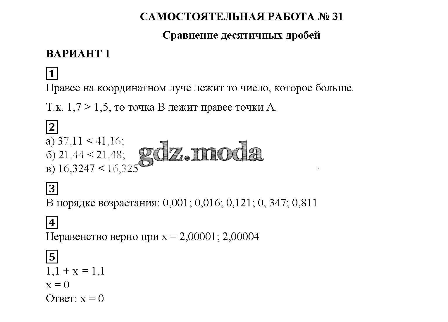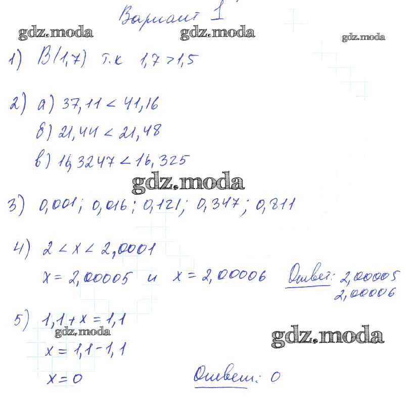 ОТВЕТ на задание № вариант №1 Дидактические материалы по Математике 5 класс Попов УМК