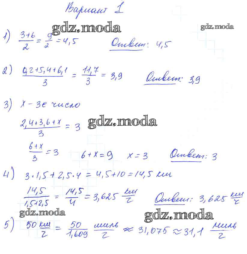 ОТВЕТ на задание № вариант №1 Дидактические материалы по Математике 5 класс Попов УМК