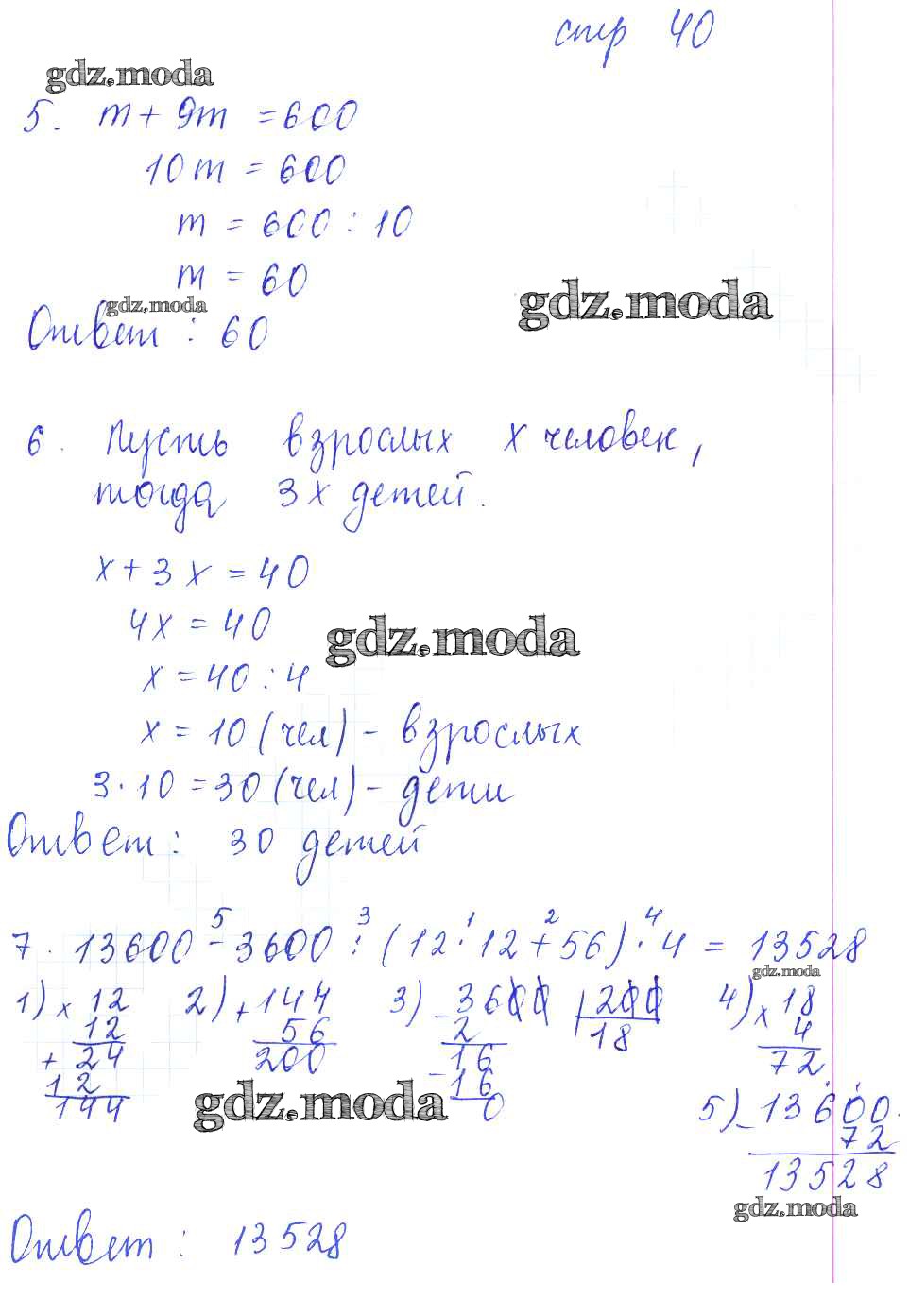 ГДЗ решение к заданию № 40 Математика 5 класс рабочая тетрадь для контрольных работ Рудницкая В.Н. (к уч. Виленкина Н.Я.) Экзамен 2013 Часть 1, Часть 2 ФГОС бесплатно на гдз.мода!