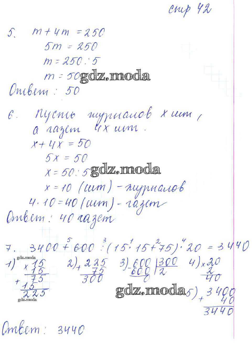 ГДЗ решение к заданию № 42 Математика 5 класс рабочая тетрадь для контрольных работ Рудницкая В.Н. (к уч. Виленкина Н.Я.) Экзамен 2013 Часть 1, Часть 2 ФГОС бесплатно на гдз.мода!