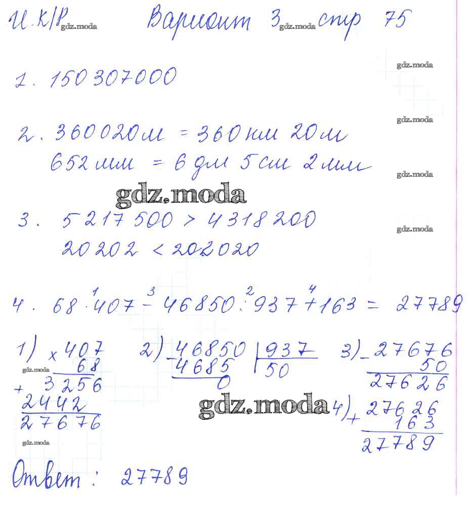 ГДЗ решение к заданию № 75 Математика 5 класс рабочая тетрадь для контрольных работ Рудницкая В.Н. (к уч. Виленкина Н.Я.) Экзамен 2013 Часть 1, Часть 2 ФГОС бесплатно на гдз.мода!