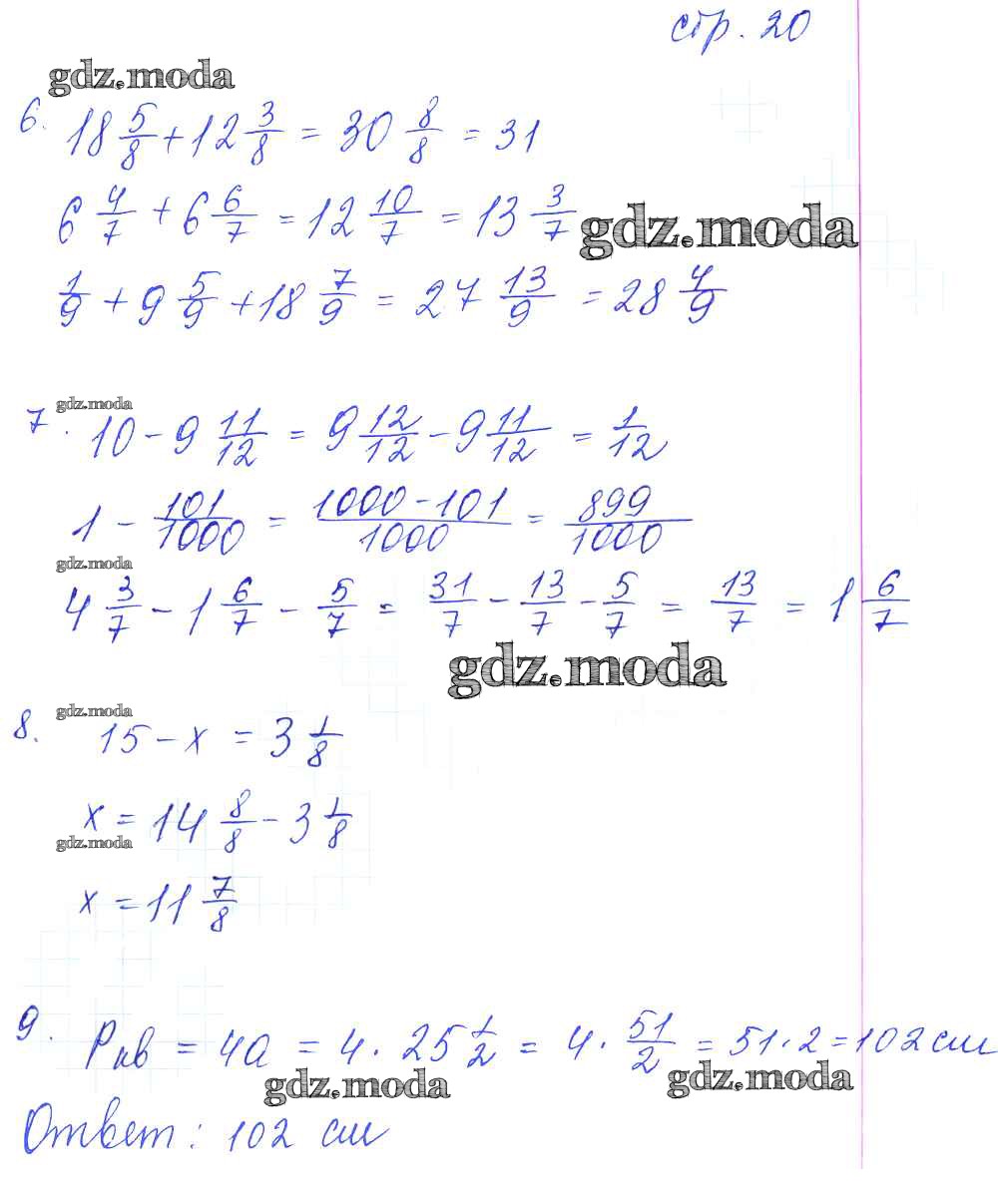ГДЗ решение к заданию № 20 Математика 5 класс рабочая тетрадь для контрольных работ Рудницкая В.Н. (к уч. Виленкина Н.Я.) Экзамен 2013 Часть 1, Часть 2 ФГОС бесплатно на гдз.мода!