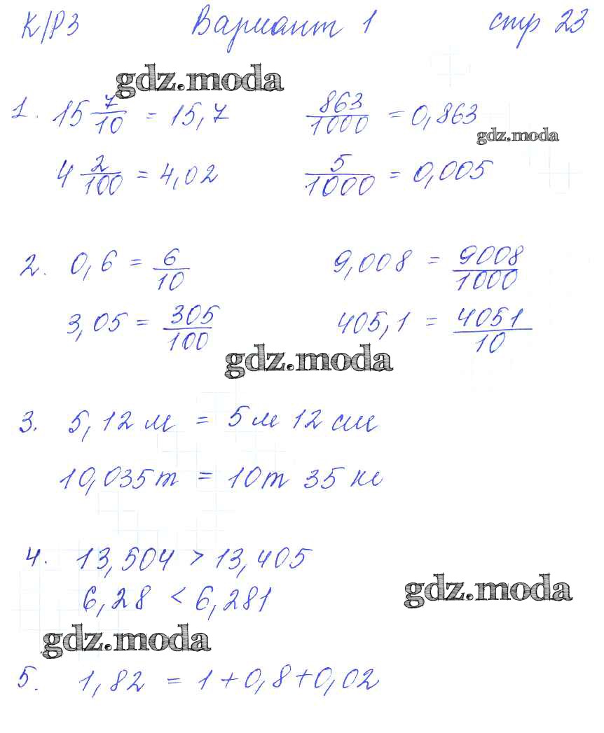 ГДЗ решение к заданию № 23 Математика 5 класс рабочая тетрадь для контрольных работ Рудницкая В.Н. (к уч. Виленкина Н.Я.) Экзамен 2013 Часть 1, Часть 2 ФГОС бесплатно на гдз.мода!