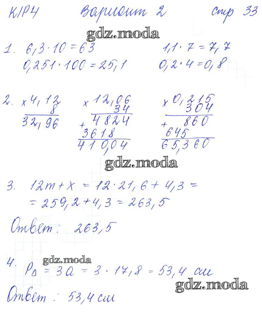 ГДЗ решение к заданию № 33 Математика 5 класс рабочая тетрадь для контрольных работ Рудницкая В.Н. (к уч. Виленкина Н.Я.) Экзамен 2013 Часть 1, Часть 2 ФГОС бесплатно на гдз.мода!