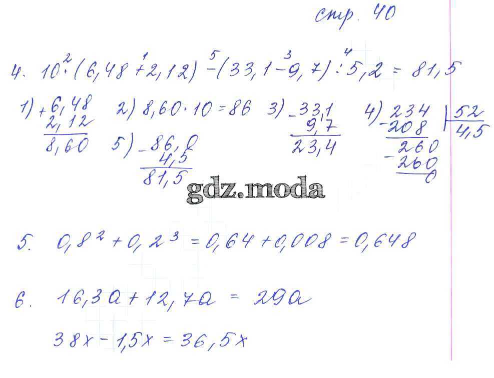 ГДЗ решение к заданию № 40 Математика 5 класс рабочая тетрадь для контрольных работ Рудницкая В.Н. (к уч. Виленкина Н.Я.) Экзамен 2013 Часть 1, Часть 2 ФГОС бесплатно на гдз.мода!