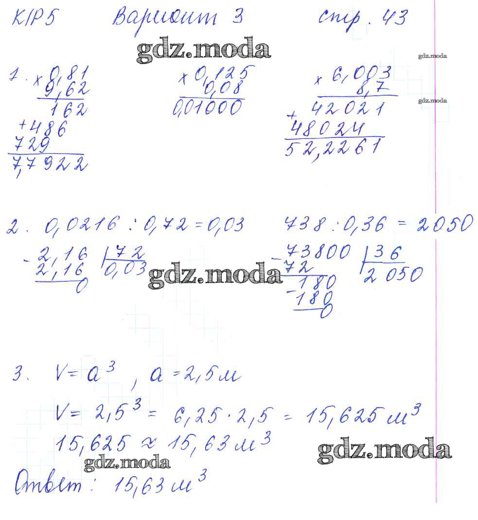 ГДЗ решение к заданию № 43 Математика 5 класс рабочая тетрадь для контрольных работ Рудницкая В.Н. (к уч. Виленкина Н.Я.) Экзамен 2013 Часть 1, Часть 2 ФГОС бесплатно на гдз.мода!