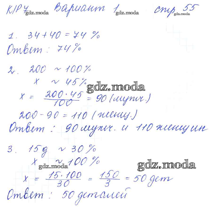 ГДЗ решение к заданию № 55 Математика 5 класс рабочая тетрадь для контрольных работ Рудницкая В.Н. (к уч. Виленкина Н.Я.) Экзамен 2013 Часть 1, Часть 2 ФГОС бесплатно на гдз.мода!