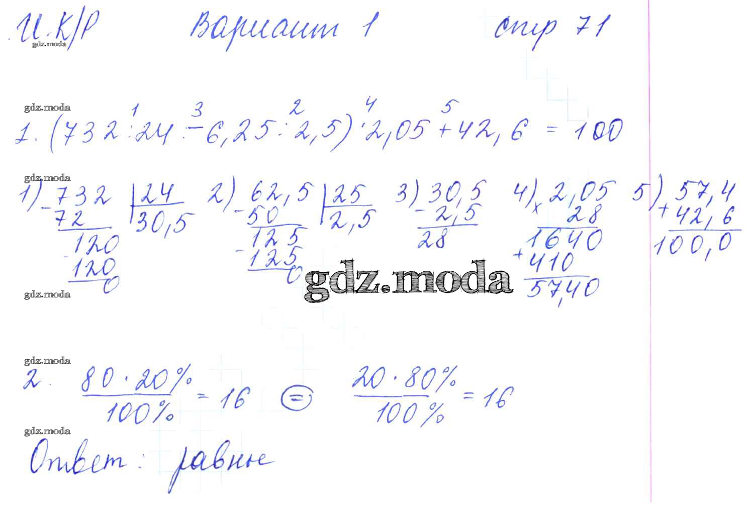 ГДЗ решение к заданию № 71 Математика 5 класс рабочая тетрадь для контрольных работ Рудницкая В.Н. (к уч. Виленкина Н.Я.) Экзамен 2013 Часть 1, Часть 2 ФГОС бесплатно на гдз.мода!