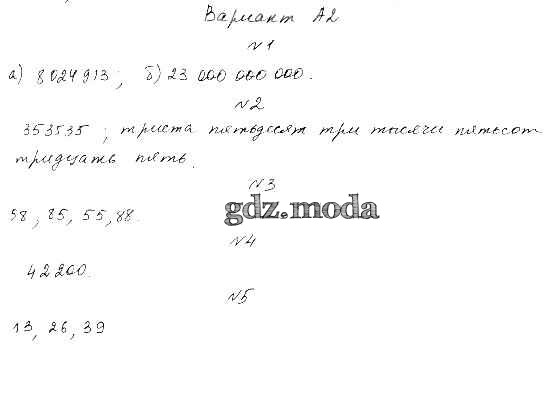 ОТВЕТ на задание № А2 Самостоятельные и контрольные работы по Математике 5 класс Ершова