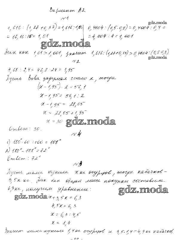 ГДЗ решение к заданию № А2 Математика 5 класс Самостоятельные и контрольные работы Ершова А.П. Илекса 2015 ФГОС бесплатно на гдз.мода!