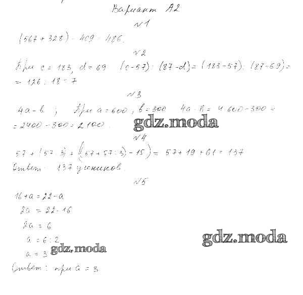 ГДЗ решение к заданию № А2 Математика 5 класс Самостоятельные и контрольные работы Ершова А.П. Илекса 2015 ФГОС бесплатно на гдз.мода!