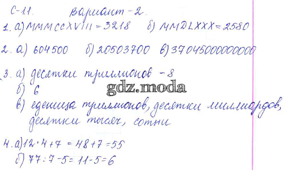 ОТВЕТ на задание № 2 Самостоятельные работы по Математике 5 класс Зубарева