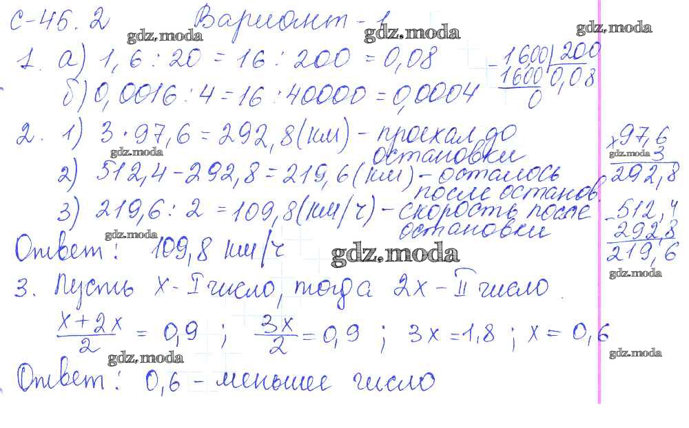 ОТВЕТ на задание № 1 Самостоятельные работы по Математике 5 класс Зубарева