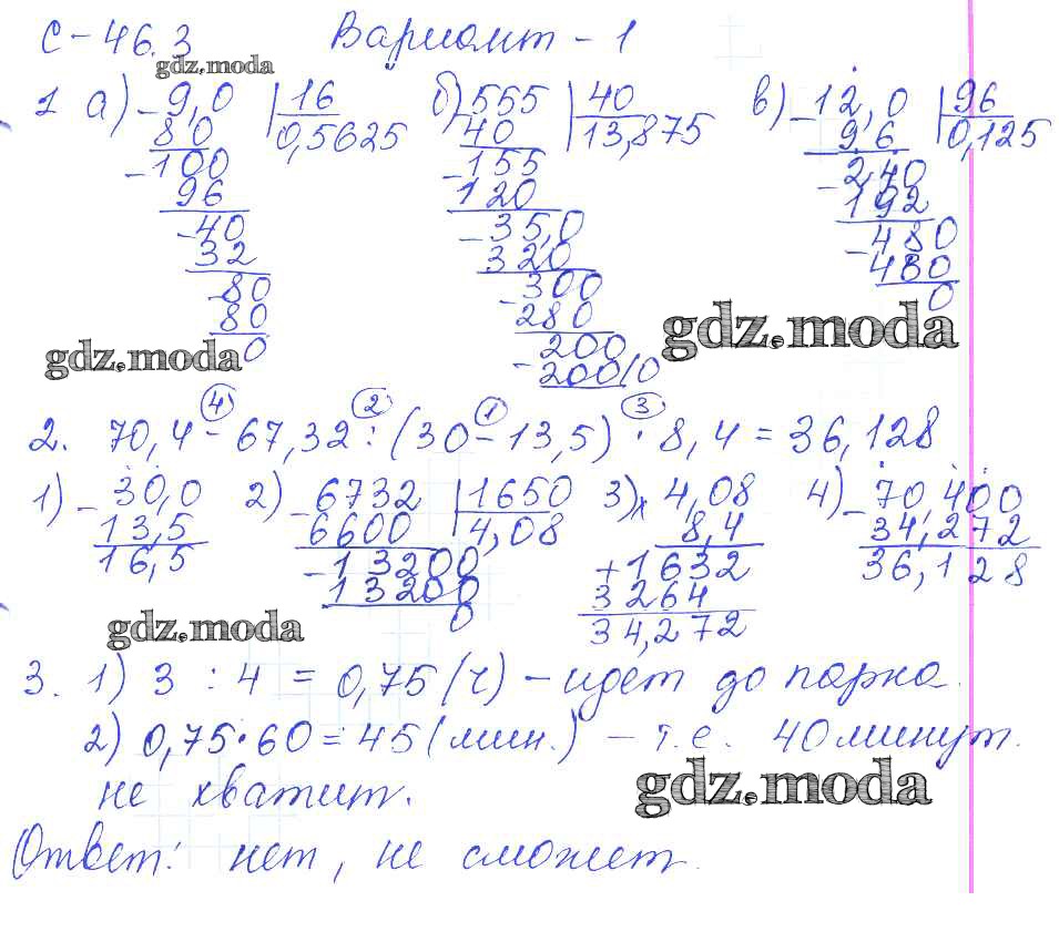 ОТВЕТ на задание № 1 Самостоятельные работы по Математике 5 класс Зубарева