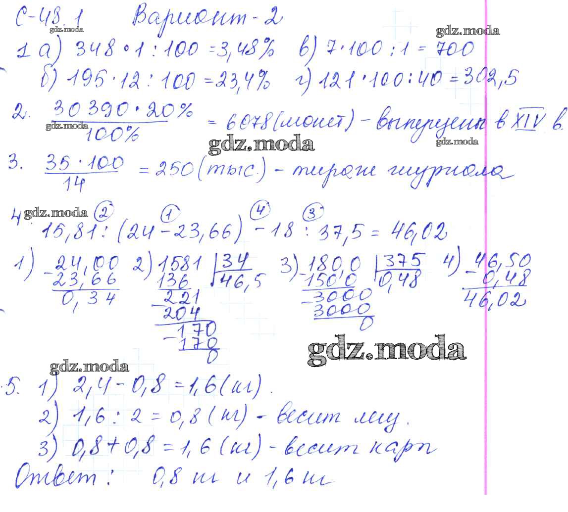ОТВЕТ на задание № 2 Самостоятельные работы по Математике 5 класс Зубарева