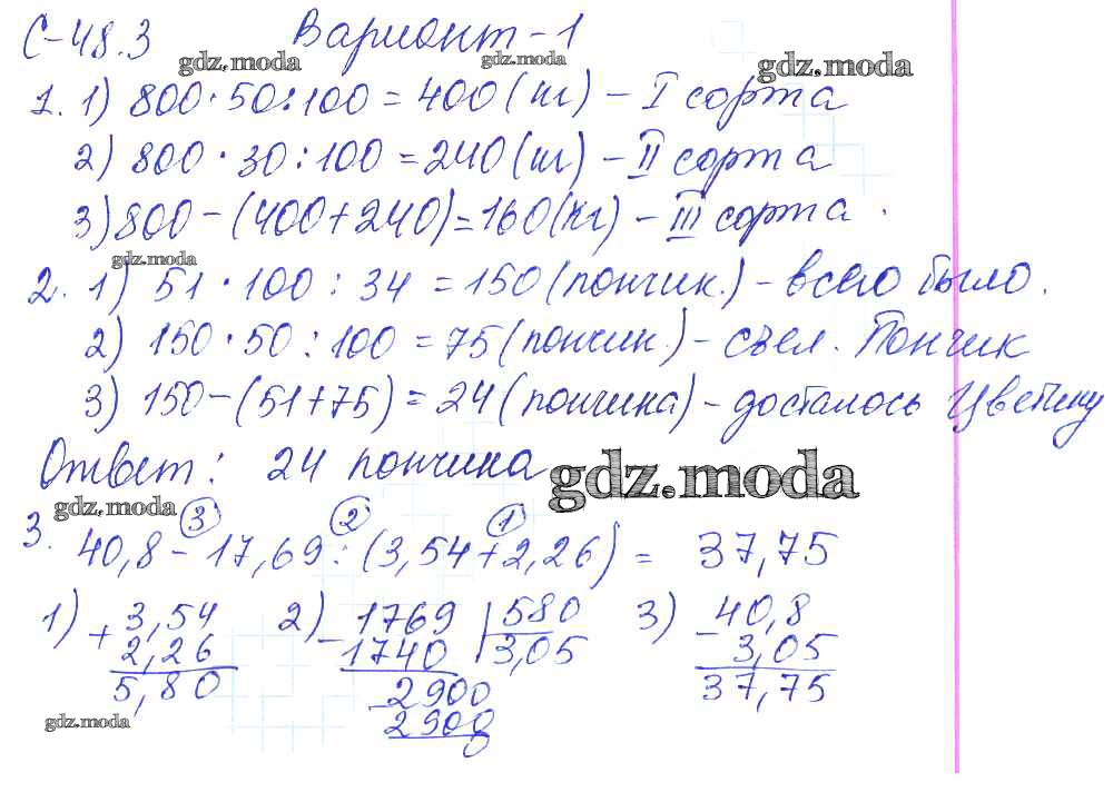 ОТВЕТ на задание № 1 Самостоятельные работы по Математике 5 класс Зубарева