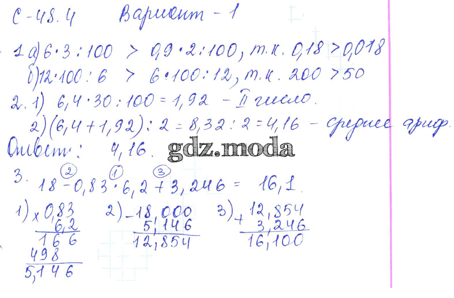 ОТВЕТ на задание № 1 Самостоятельные работы по Математике 5 класс Зубарева