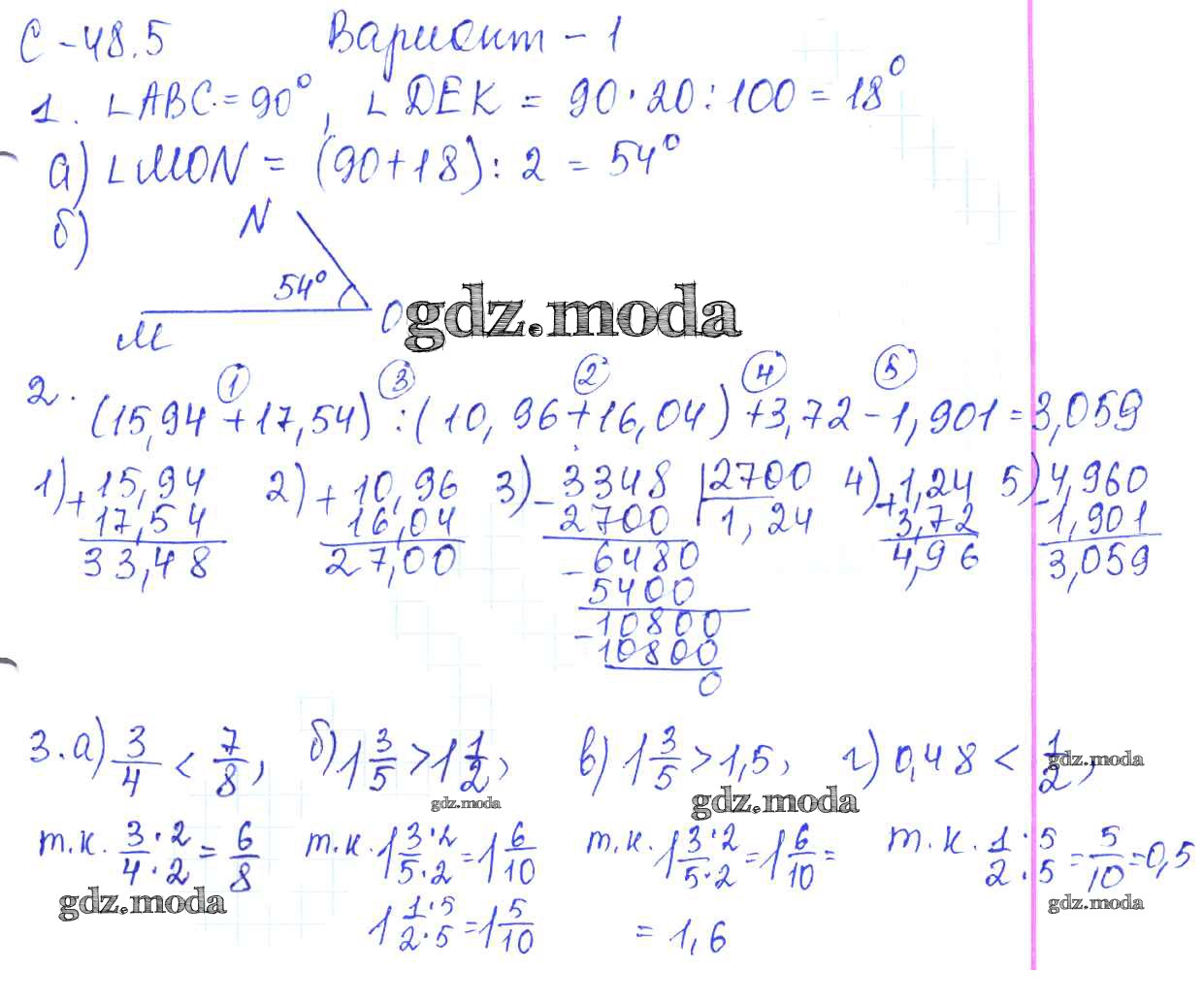 ОТВЕТ на задание № 1 Самостоятельные работы по Математике 5 класс Зубарева