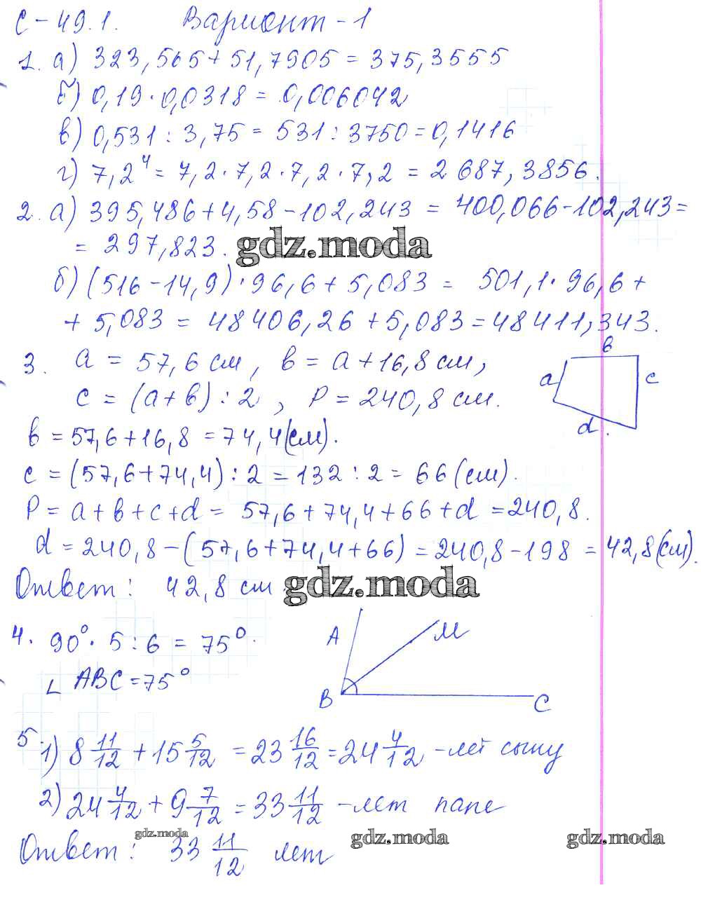 ОТВЕТ на задание № 1 Самостоятельные работы по Математике 5 класс Зубарева