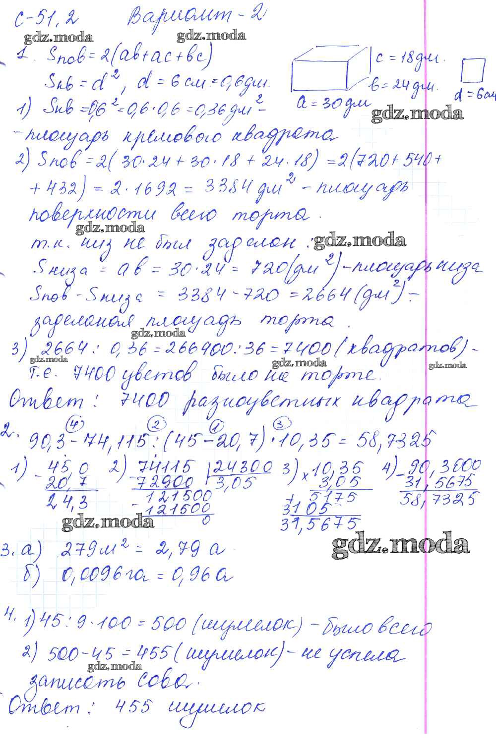 ОТВЕТ на задание № 2 Самостоятельные работы по Математике 5 класс Зубарева