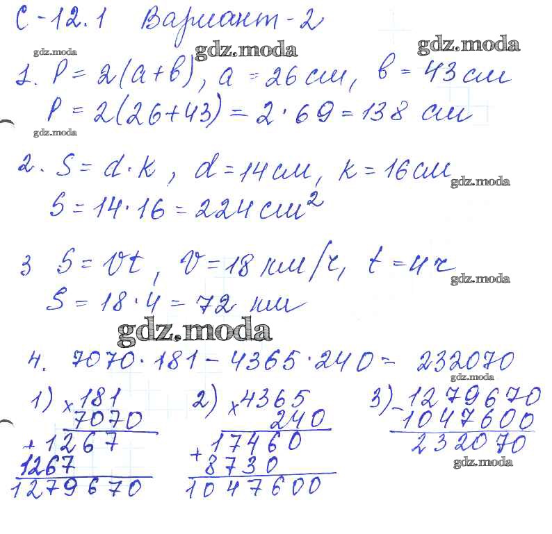ОТВЕТ на задание № 2 Самостоятельные работы по Математике 5 класс Зубарева