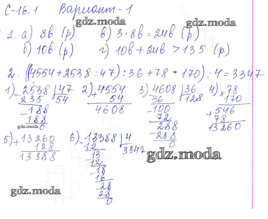 ОТВЕТ на задание № 1 Самостоятельные работы по Математике 5 класс Зубарева