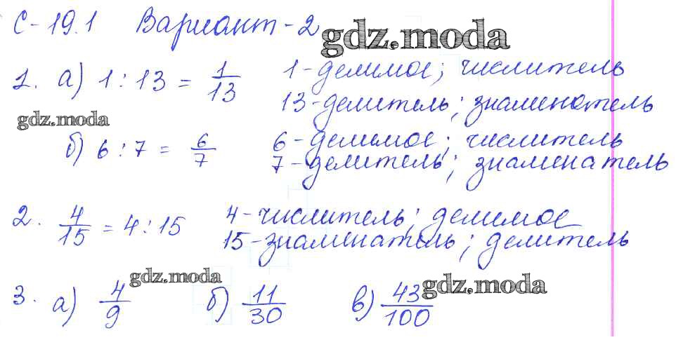 ОТВЕТ на задание № 2 Самостоятельные работы по Математике 5 класс Зубарева