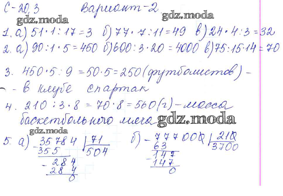 ОТВЕТ на задание № 2 Самостоятельные работы по Математике 5 класс Зубарева