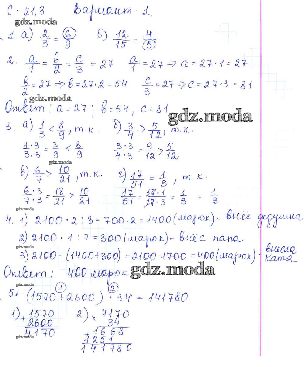 ОТВЕТ на задание № 1 Самостоятельные работы по Математике 5 класс Зубарева