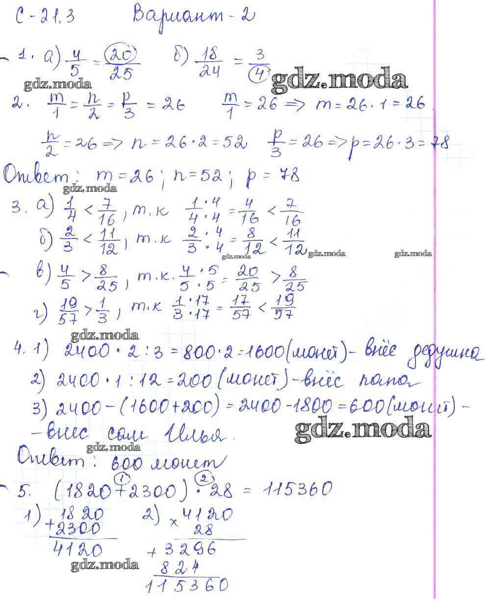 ОТВЕТ на задание № 2 Самостоятельные работы по Математике 5 класс Зубарева