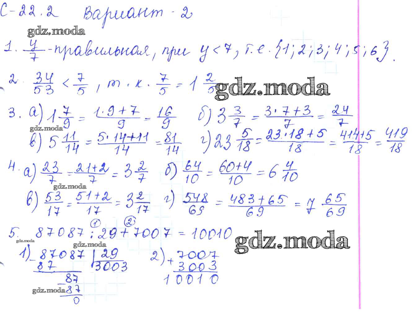 ОТВЕТ на задание № 2 Самостоятельные работы по Математике 5 класс Зубарева