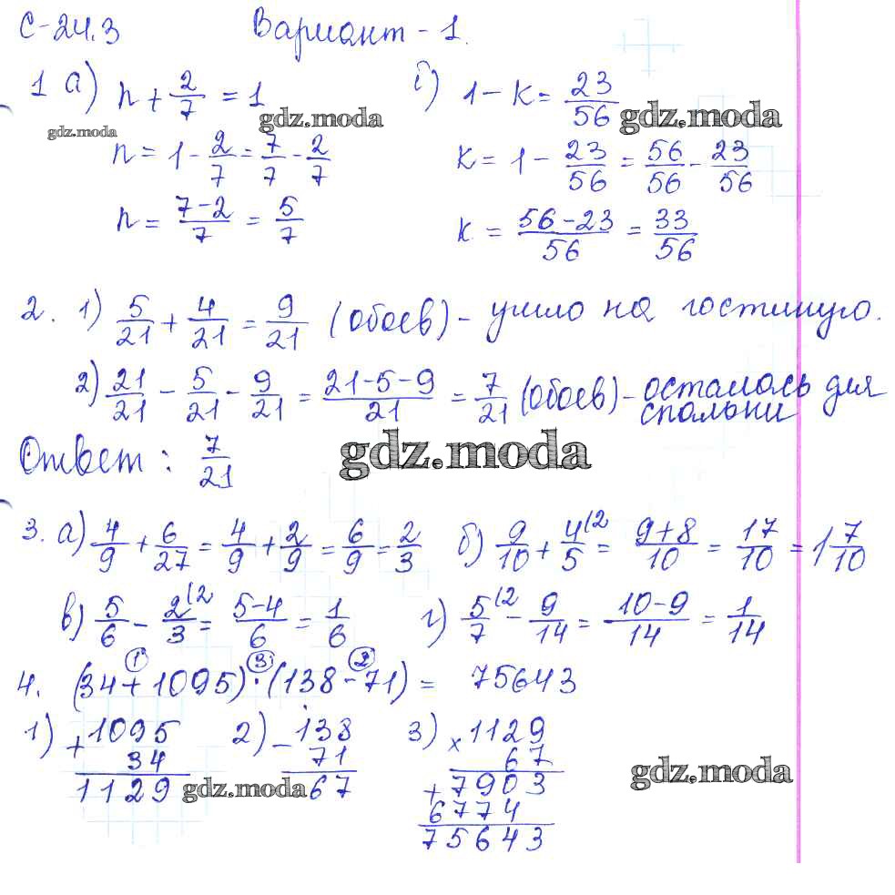 ОТВЕТ на задание № 1 Самостоятельные работы по Математике 5 класс Зубарева