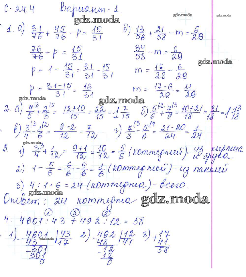 ОТВЕТ на задание № 1 Самостоятельные работы по Математике 5 класс Зубарева