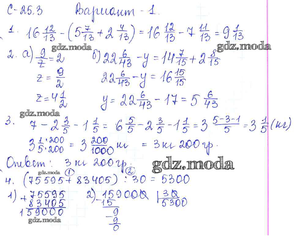 ОТВЕТ на задание № 1 Самостоятельные работы по Математике 5 класс Зубарева
