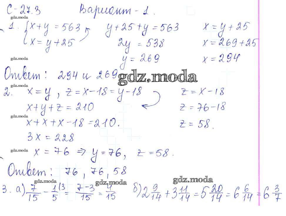 ОТВЕТ на задание № 1 Самостоятельные работы по Математике 5 класс Зубарева