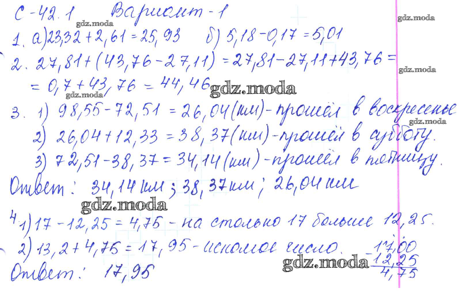 ОТВЕТ на задание № 1 Самостоятельные работы по Математике 5 класс Зубарева