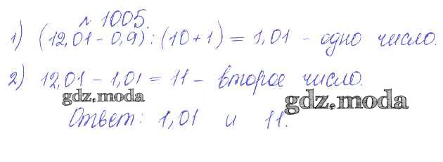 ОТВЕТ на задание № 1005 Сборник задач и упражнений по Математике 5 класс Гамбарин