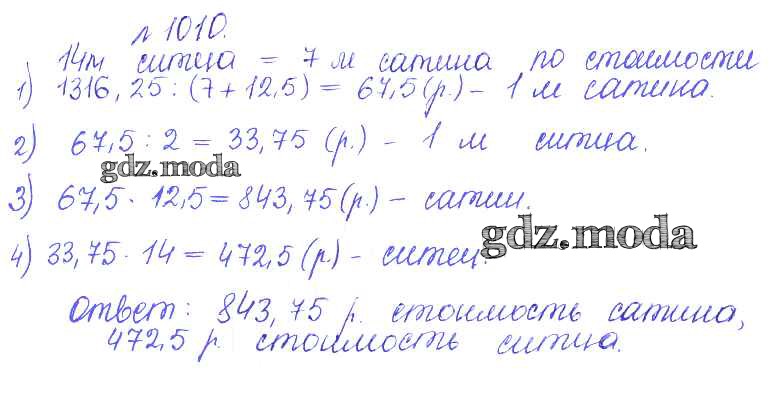 ОТВЕТ на задание № 1010 Сборник задач и упражнений по Математике 5 класс Гамбарин