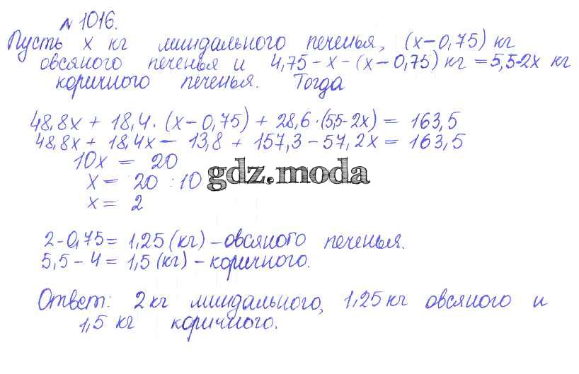 ОТВЕТ на задание № 1016 Сборник задач и упражнений по Математике 5 класс Гамбарин