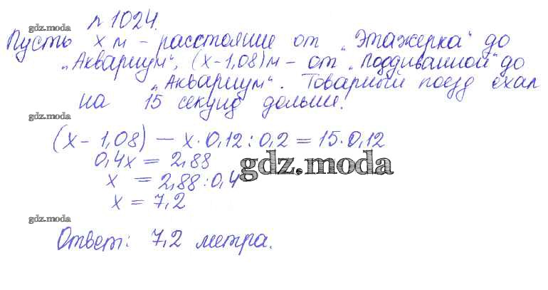 ОТВЕТ на задание № 1024 Сборник задач и упражнений по Математике 5 класс Гамбарин