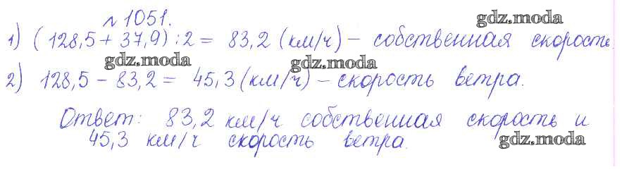 ОТВЕТ на задание № 1051 Сборник задач и упражнений по Математике 5 класс Гамбарин