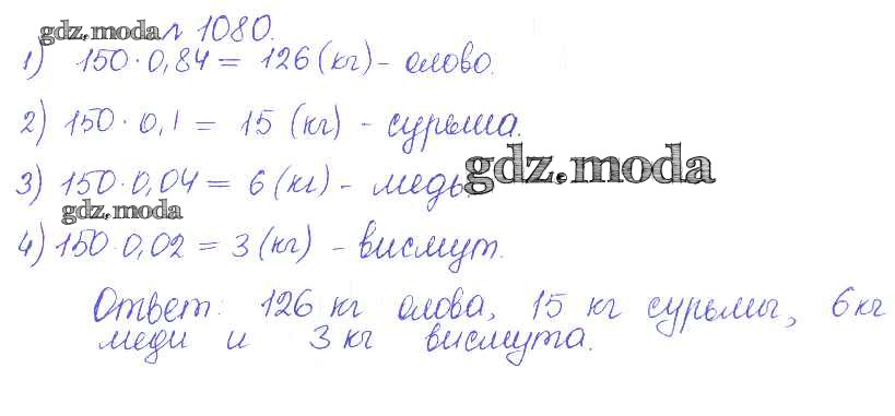 ОТВЕТ на задание № 1080 Сборник задач и упражнений по Математике 5 класс Гамбарин
