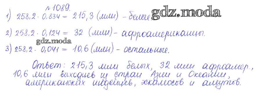 ОТВЕТ на задание № 1089 Сборник задач и упражнений по Математике 5 класс Гамбарин