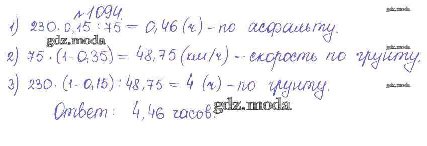 ОТВЕТ на задание № 1094 Сборник задач и упражнений по Математике 5 класс Гамбарин