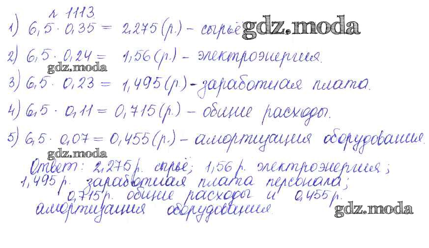 ОТВЕТ на задание № 1113 Сборник задач и упражнений по Математике 5 класс Гамбарин